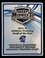 As part of the committee meeting, the conference office presented the 2013-14 Athletic Training Staff of the Year award to the training staff at Trevecca Nazarene University. Accepting the award for TNU was head athletic trainer Jared White, along with assistant athletic trainers Ben Cleveland and Stephanie Scott. White and Cleveland will each be entering their seventh year at TNU, while Scott will be in her sixth in 2014-15.